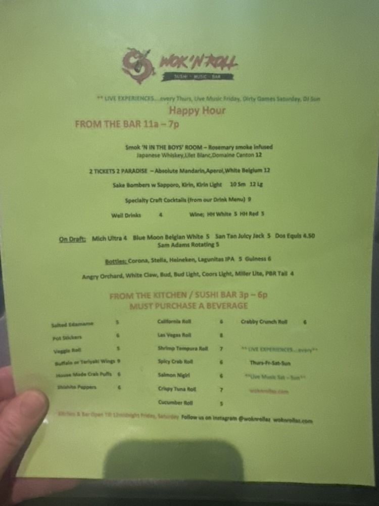 The atmosphere is casual and perfect for groups or families, enhanced by live music and outdoor seating options. It's a haven for day drinkers, thanks to an all-day happy hour that pairs well with their thoughtfully curated drink menu. Though the food happy hour ends at 6 PM—unlike the drink specials—you'll find a fantastic selection that keeps diners coming back for more. Whether you're here for lunch or dinner, Wok ‘N Roll promises an unforgettable meal.